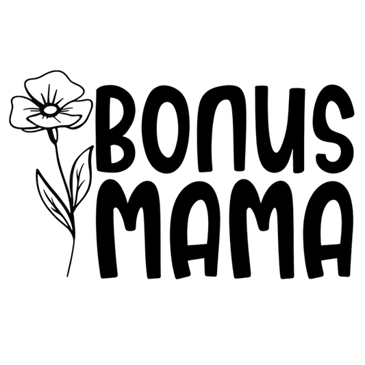A stylish design featuring "BONUS MAMA" with a delicate flower illustration, perfect for celebrating special roles in family.DTF Transfers dtf transfers
