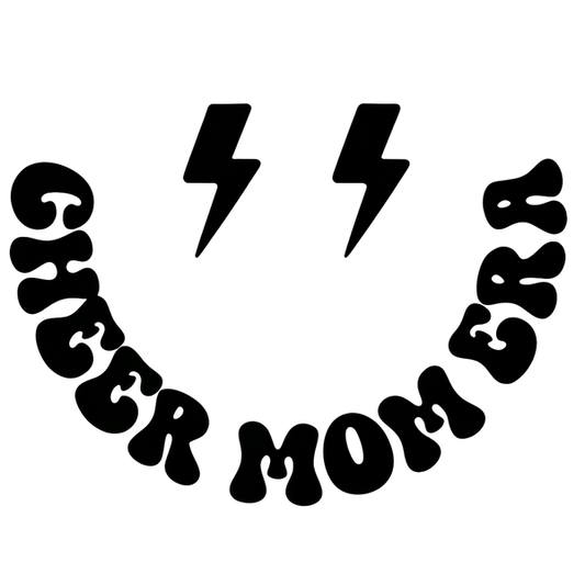 A playful graphic featuring the phrase "Cheer Mom" accented with lightning bolts, perfect for cheering on sports events or celebrations.DTF Transfers heat press transfers