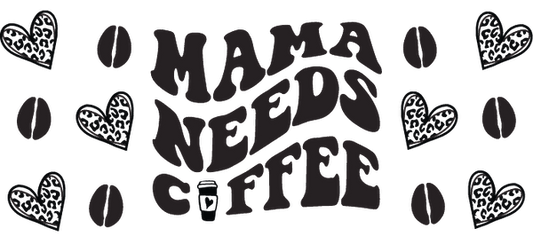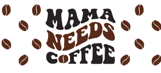 Mama Needs Coffee sign features distinctive coffee beans as the designUV Transfers