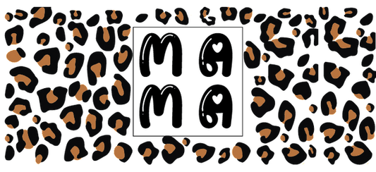 Stylish "MOM" graphic with a trendy leopard print design, perfect for celebrating motherhood in a fun and fashionable way.