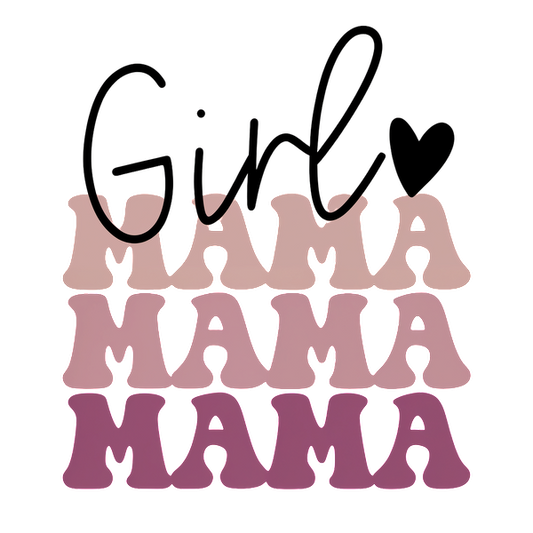 Playful design featuring the word "Girl" and multiple "Mama" in soft pink tones, perfect for celebrating motherhood.DTF Transfers dtf transfers