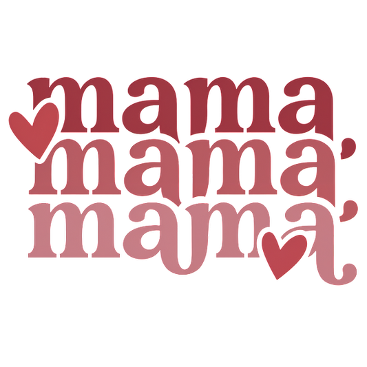Playful design featuring the word "mama" in various styles and shades of pink, embellished with heart accents.DTF Transfers heat press transfers