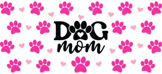 Pink dog paw and heart stickers to frame dog mom text.UV Transfers