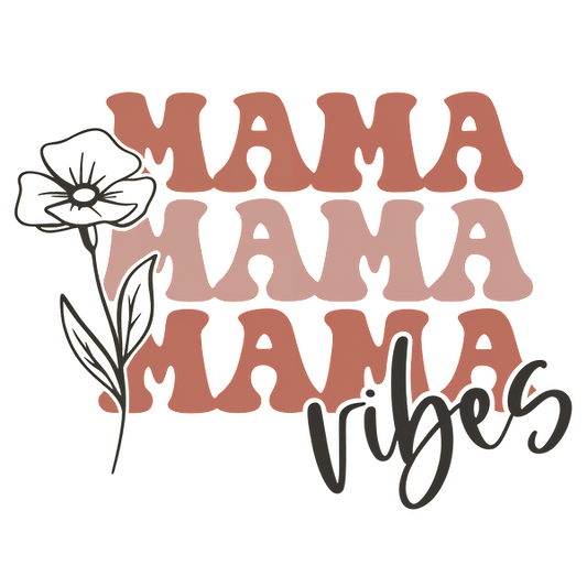 Stylish "Mama Vibes" graphic featuring repeating text and a delicate flower illustration, perfect for celebrating motherhood.DTF Transfers