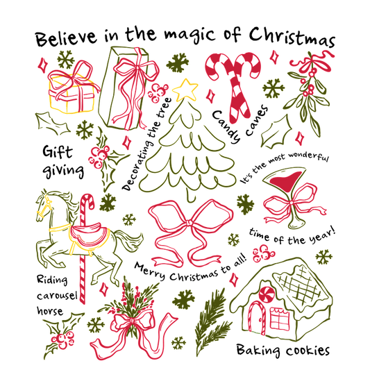Celebrate the season with whimsical Christmas illustrations and joyful holiday messages!DTF Transfers