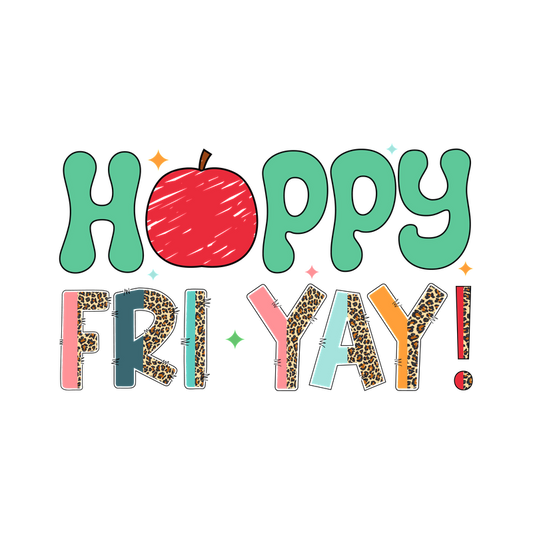 Celebrate the weekend with this colorful "Hoppy Fri-Yay!" graphic design!DTF Transfers