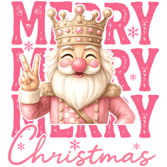 Colorful Christmas graphic featuring a cheerful, kingly Santa with peace sign.DTF Transfers