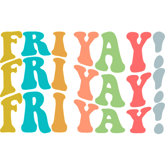 Colorful "FRI YAY" typography design celebrating the weekend's arrival with joy!DTF Transfers