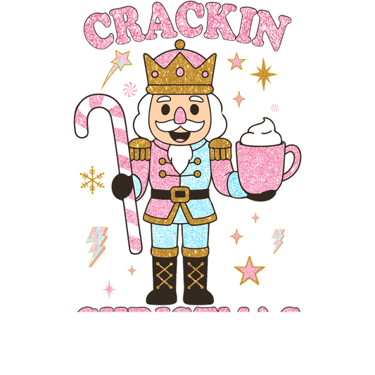 Sparkling nutcracker character holding a candy cane and mug, festive and fun!DTF Transfers
