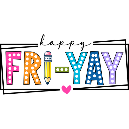 Colorful "FRI-YAY" graphic featuring a pencil and a heart for fun!DTF Transfers