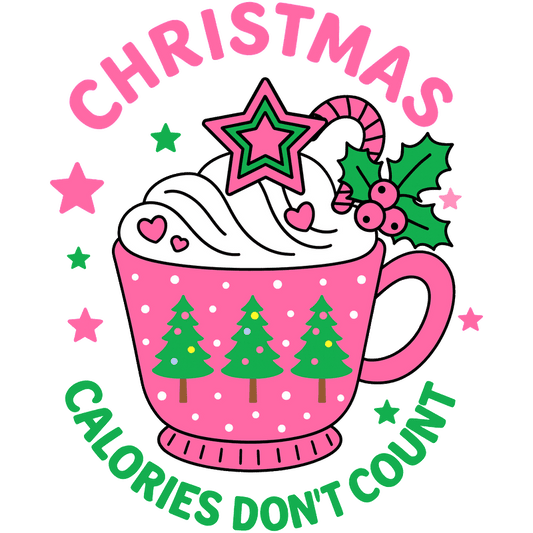 Cute pink Christmas mug filled with whipped cream, featuring trees and festive decorations!DTF Transfers