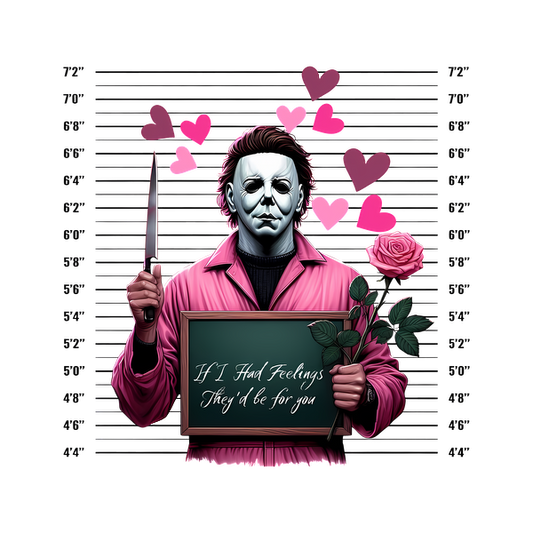 Prix habituel À partir de £0.75 GBPPrix habituelPrix unitaire / par£2.40 GBPPrix promotionnel À partir de £0.75 GBPA whimsical illustration featuring a character in a pink outfit holding a sign that says, "If I Had Feelings, They'd Be for You," alongside a rose and surrounded by hearts. dtf transfers