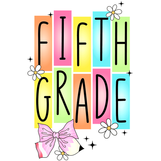 Colorful grade-themed designs featuring playful text and cute bows for kids!DTF Transfers