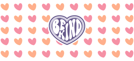 Colorful heart pattern featuring the playful text "Be Kind" in a heart.UV Transfers