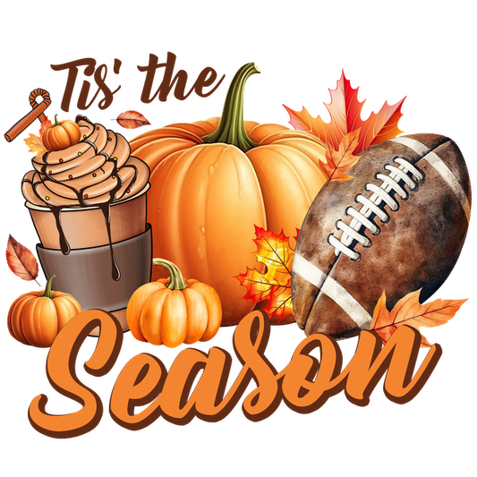 Celebrate football season with this vibrant design featuring a football, pumpkins, and autumn leaves, perfect for fall fans! heat press transfers
