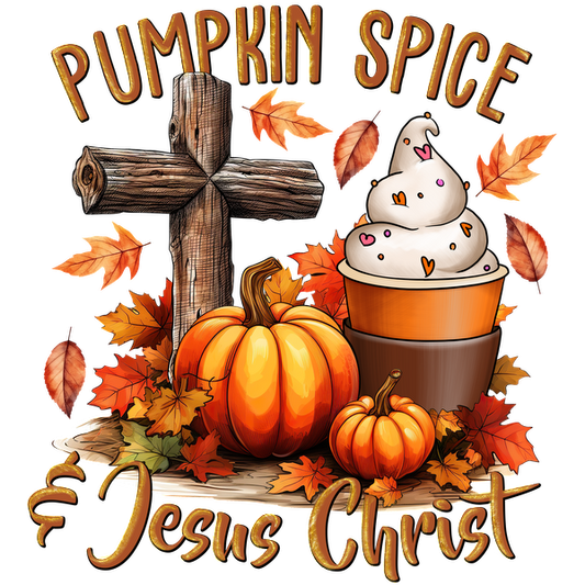 A festive autumn design featuring pumpkins and a cross with a heartfelt message.DTF Transfers