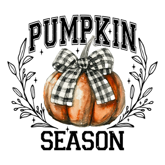 A charming orange pumpkin adorned with a stylish black and white checked bow, perfect for autumn decorations.dtf regular iron