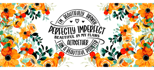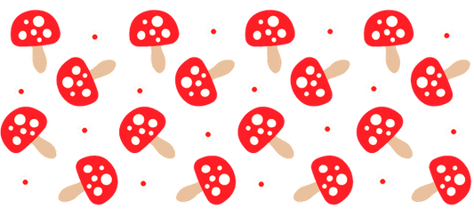 Printed paper with red mushrooms and white flowers.UV Transfers