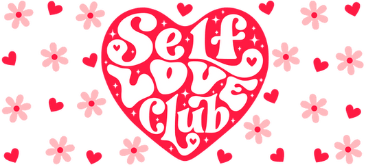 A valentine's card displays pink flowers and hearts all around.UV Transfers