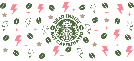 A vibrant pattern featuring the Starbucks logo surrounded by coffee beans, stars, and lightning bolts in cheerful colors.UV Transfersdtf regular iron