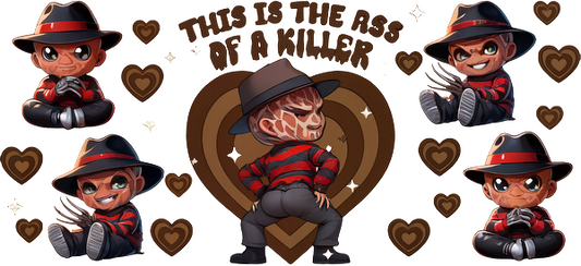 A playful and colorful illustration featuring a chibi-style character with a striped sweater and hat, surrounded by hearts.UV Transfers heat press transfers