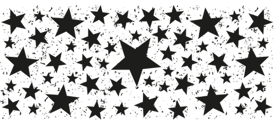 A variety of black stars in different sizes create a striking cosmic pattern, perfect for decorative designs.UV Transfers heat press transfers