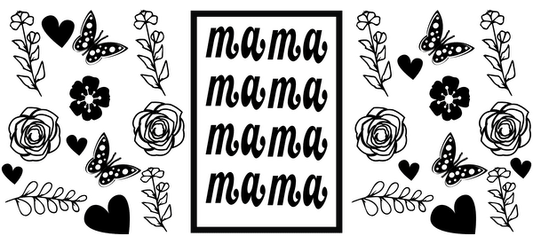 Mama set of metal dies with floral and heart accents.UV Transfers