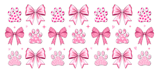 A set of pink cat paw stickers with bows and hearts.UV Transfers