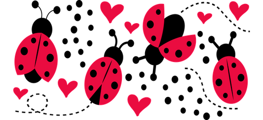A cheerful design featuring red ladybugs with black spots and cute hearts, perfect for adding a playful touch to any project.UV Transfers dtf transfers