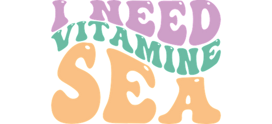 A fun, colorful design featuring the playful phrase "I Need Vitamin Sea," perfect for beach lovers and summer vibes.UV Transfersdtf regular iron