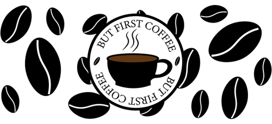A simple black outline illustration of a steaming coffee cup, perfect for café-themed designs or morning coffee inspiration.UV Transfers dtf prints