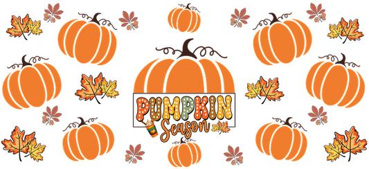 Celebrate the vibrant colors of autumn with this festive "Pumpkin Season" design featuring pumpkins and fall leaves.UV Transfers dtf transfers