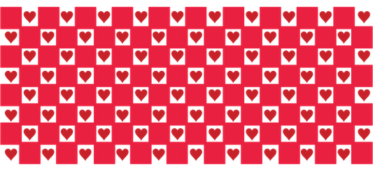 A vibrant pattern of red hearts against a deeper red background, creating a cheerful and romantic design.UV Transfers dtf transfers