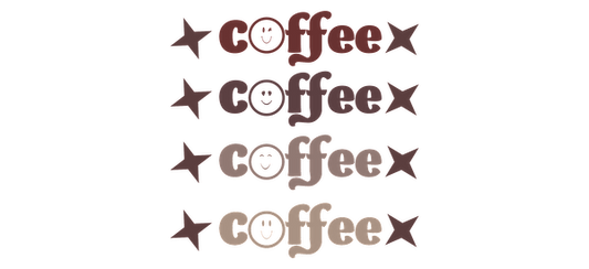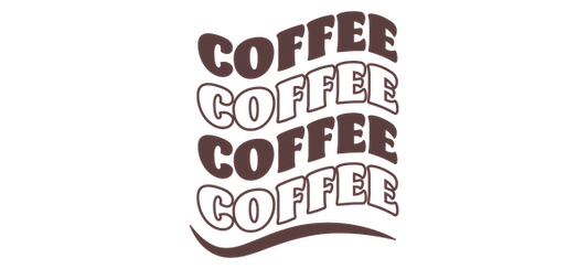 Bold and playful typography featuring the word "COFFEE" in a stacked, wavy design, perfect for coffee lovers.UV Transfers heat press transfers