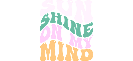 A fun and vibrant design featuring the phrase "Sun Shining on My Mind" in playful, colorful letters.UV Transfers dtf transfers