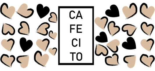 A whimsical design featuring scattered beige hearts on a contrasting black background, perfect for adding a touch of love.UV Transfers dtf transfers