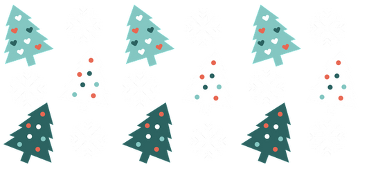 A festive pattern featuring colorful Christmas trees with hearts and polka dots, surrounded by snowflakes for a cheerful holiday vibe.UV Transfers dtf transfers