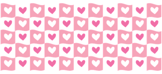 A playful pattern of pink and black hearts on light pink squares, perfect for adding a touch of love to any design!UV Transfers heat press transfers