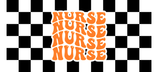 Playful retro-style design featuring the word "NURSE" repeated in bold orange letters. Perfect for celebrating nursing professionals!UV Transfers dtf prints