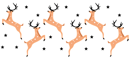 A cheerful illustration of leaping deer, showcasing a playful design with spots and a lively jump.UV Transfers dtf transfers