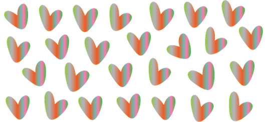 A vibrant pattern of colorful hearts arranged in a playful, repeating design.UV Transfersdtf regular iron