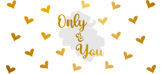 A romantic design featuring the phrase "Only & You" surrounded by golden hearts, perfect for celebrating love.UV Transfersdtf regular iron