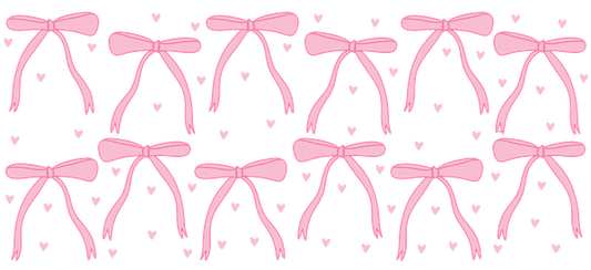 A playful pattern of pink bows and hearts, perfect for adding a sweet touch to any design project.UV Transfers dtf transfers