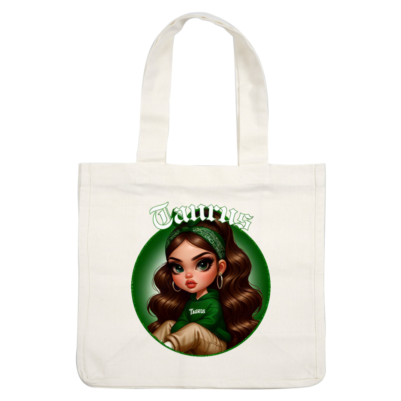 A stylish character illustration featuring a girl in a green hoodie and bandana, embracing the Taurus zodiac theme. dtf prints