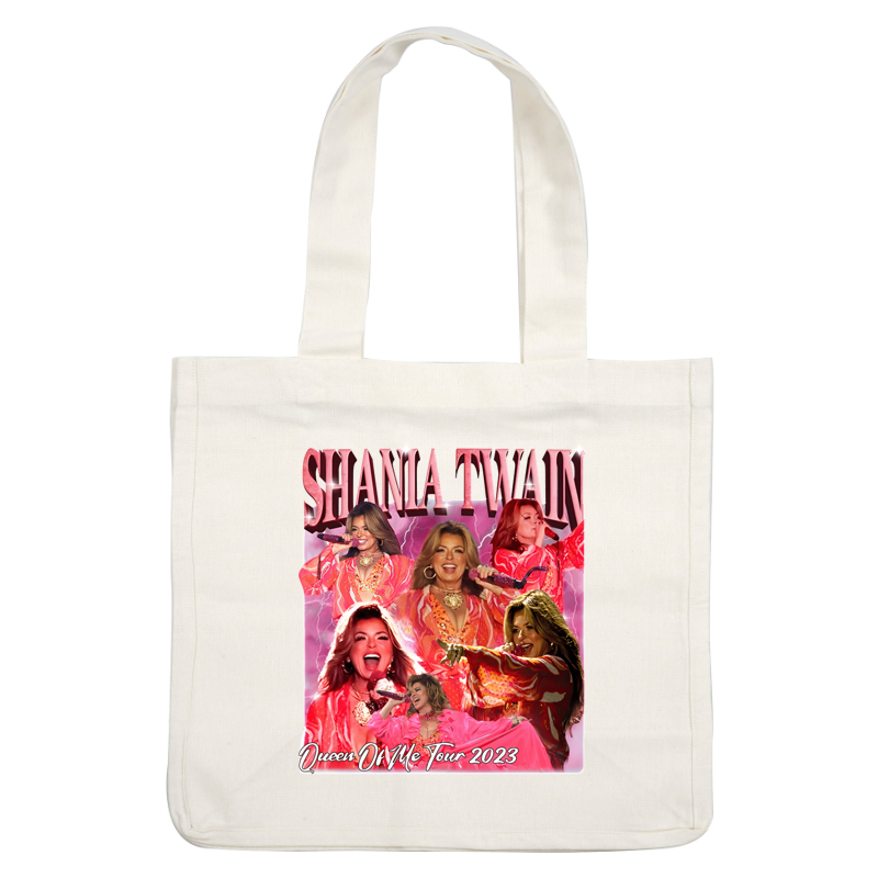 A vibrant collage of Shania Twain performing in a stunning pink outfit during her Queen Of Me Tour 2023.DTF Transfersdtf regular iron