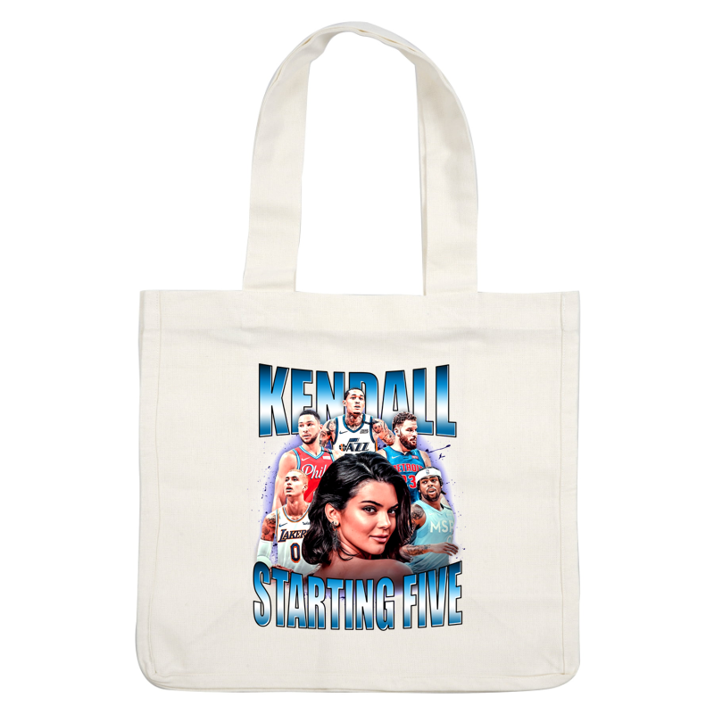 A vibrant graphic featuring Kendall surrounded by NBA players, celebrating a "Starting Five" theme with bold lettering and striking colors.DTF Transfers dtf prints