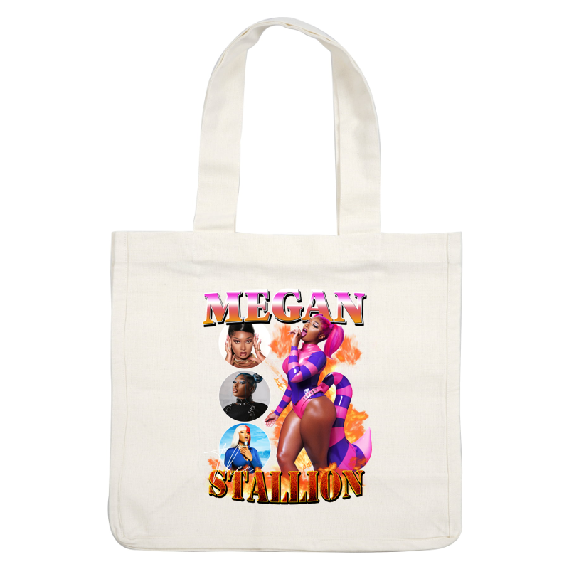 Bold and dynamic collage featuring Megan Thee Stallion in vibrant outfits, showcasing her striking style and confident persona.DTF Transfersdtf regular iron
