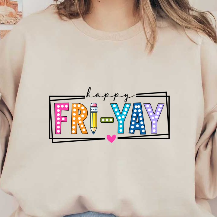Colorful "FRI-YAY" graphic featuring a pencil and a heart for fun!DTF Transfers