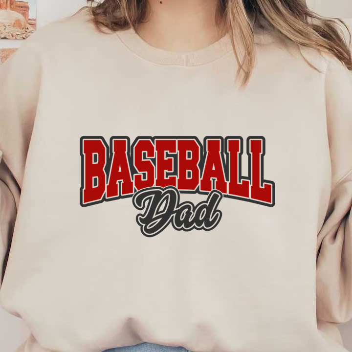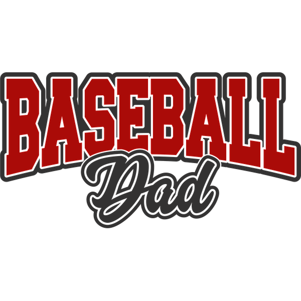 A bold graphic design featuring the phrase "Baseball Dad" in red and black lettering, perfect for sports-loving fathers.DTF Transfers dtf transfers