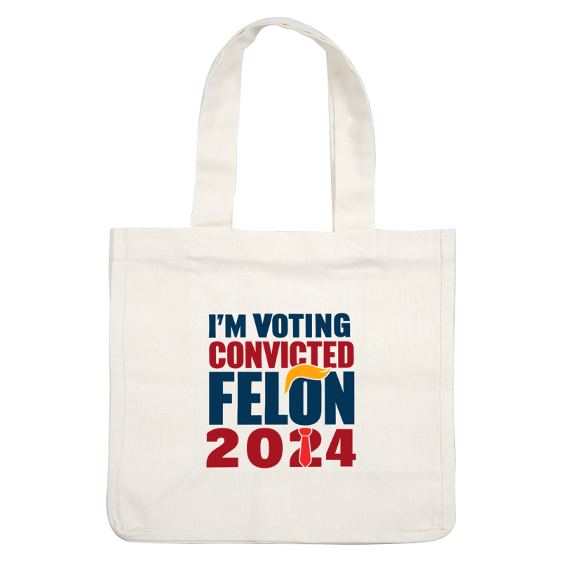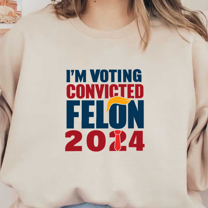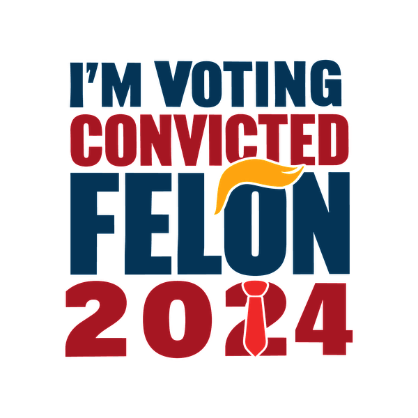 A bold graphic design featuring the text "I'M VOTING CONVICTED FELON 2014," highlighting a unique political statement.dtf regular iron